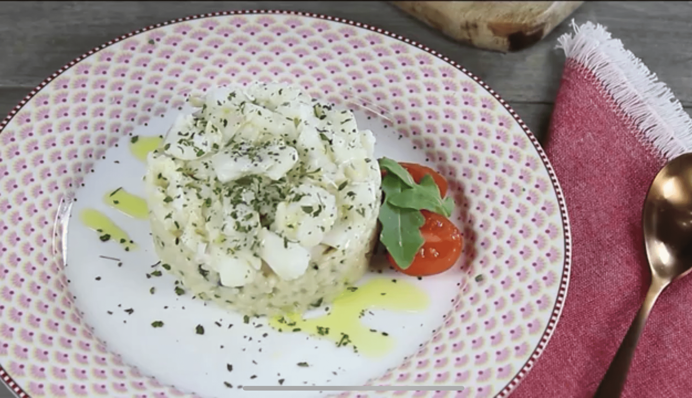 Filetes de Bacalao a la Gallega con Patatas, Coliflor y Ajada